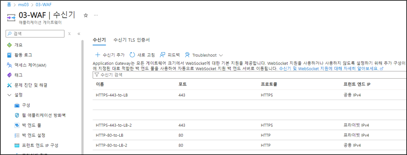 - 공용 IP 대역과 프라이빗 IP 대역에서 들어오는 트래픽 수신을 위한 수신기 설정