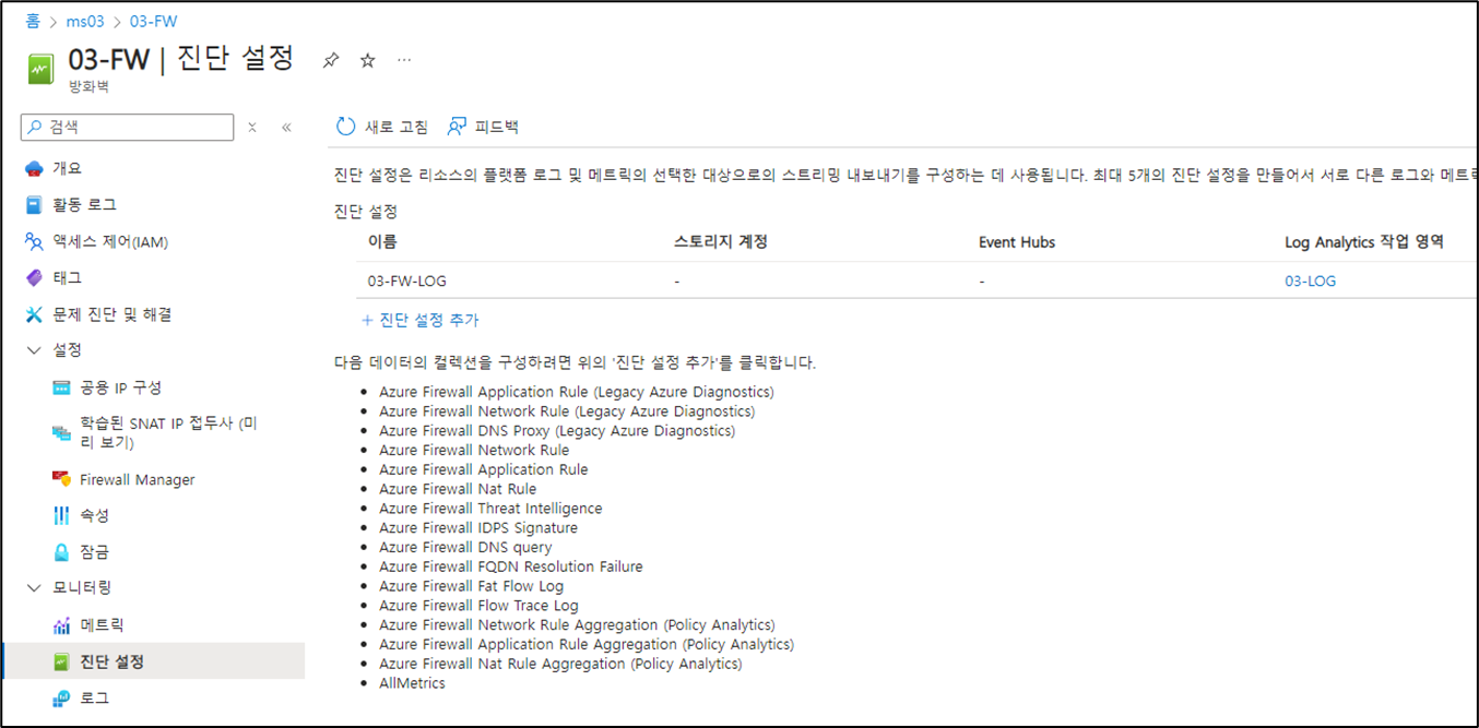 - 방화벽 로그를 확인하기 위해 진단 설정