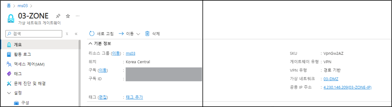 | 메뉴 | 가상 네트워크 게이트웨이, 로컬 네트워크 게이트웨이, 연결 |