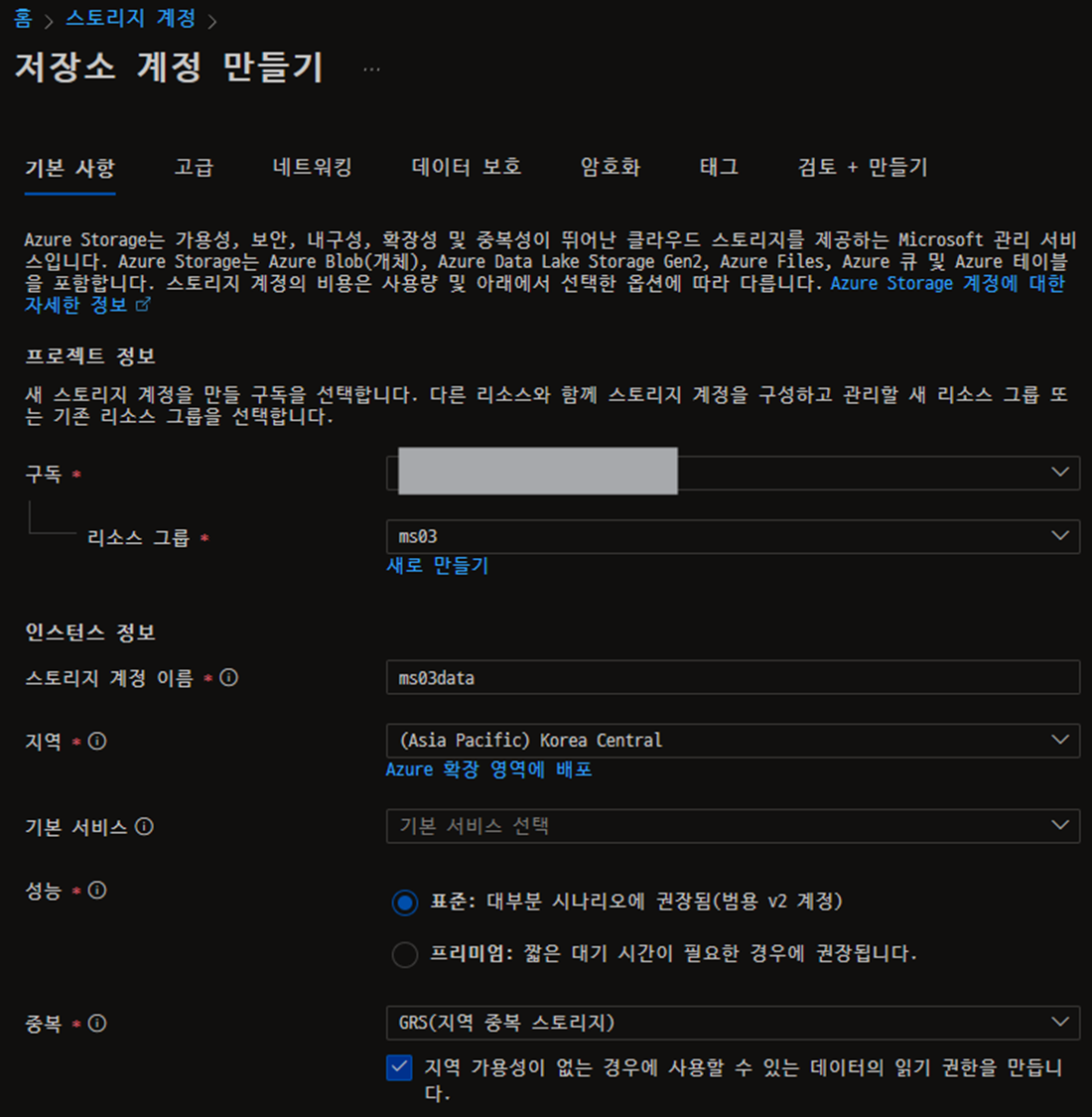 - vhd파일을 업로드하기 위해 스토리지 계정과 컨테이너를 생성한다.